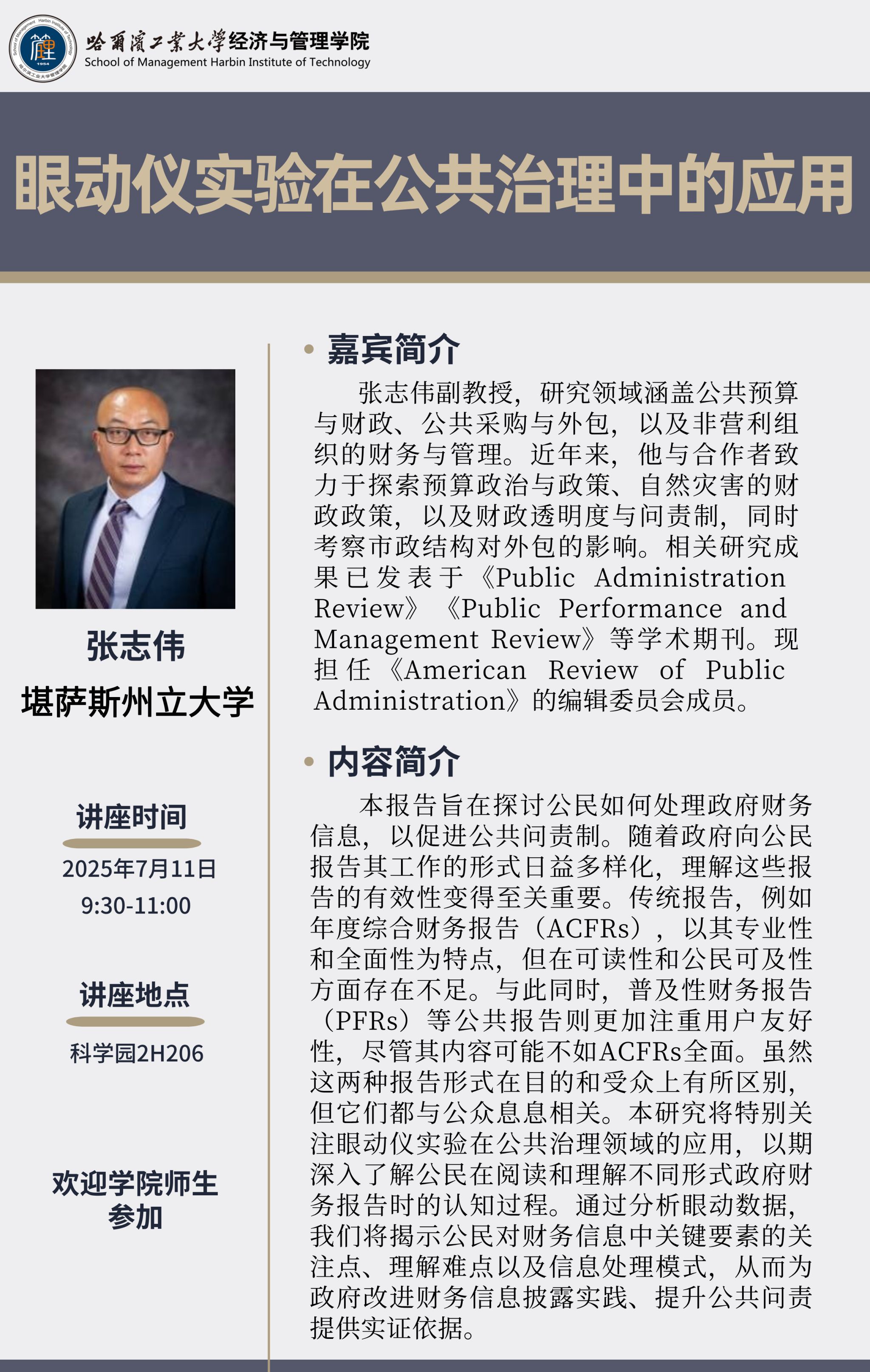 讲座主题:眼动仪实验在公共治理中的应用