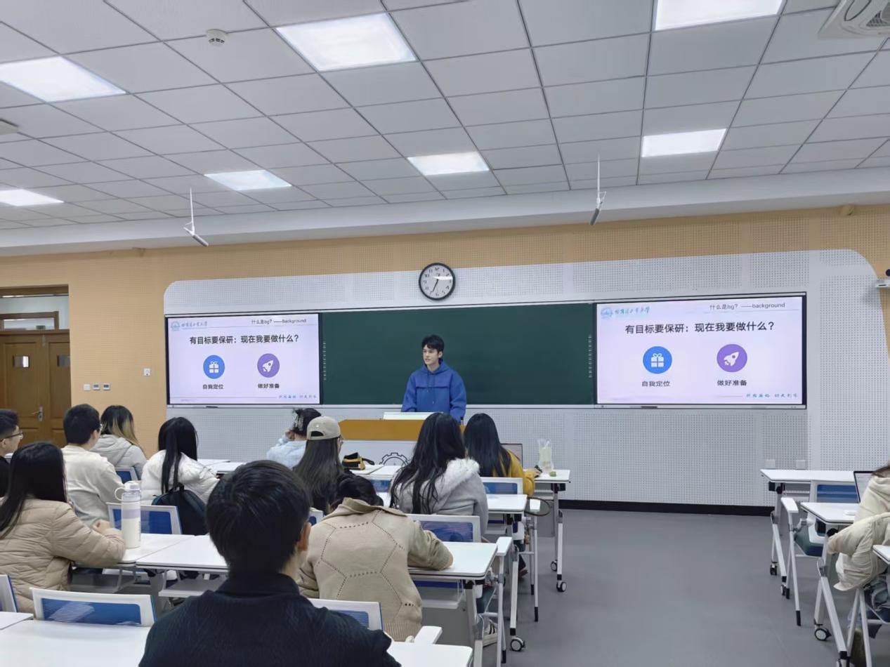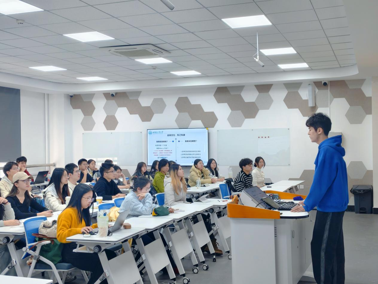 2025年11月11日,经济与管理学院“经心远航”深造支持计划升学经验分享会在正心楼220教室举行。本次分享会邀请到成功保研至北京大学、清华大学、上海交通大学的三位学长学姐作为分享嘉宾,分享升学经验,提供策略思路,助力学院有志深造的同学明晰规划、充分准备、增强信心。学院60余名本科生参加分享会,学院辅导员张俊主持分享会。