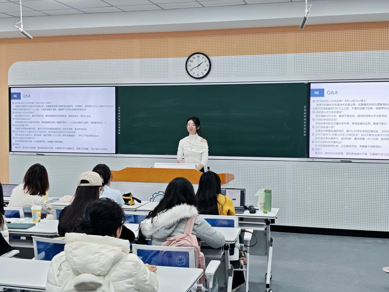 会后,分享嘉宾回答了同学们的个性化问题并结合升学实战经验为同学们综合素质全面发展提出了建议。未来,学院将持续实施提升深造率专项行动,增强学生赴世界一流大学深造的信心和能力,着力培养更多高层次优秀经济管理人才。