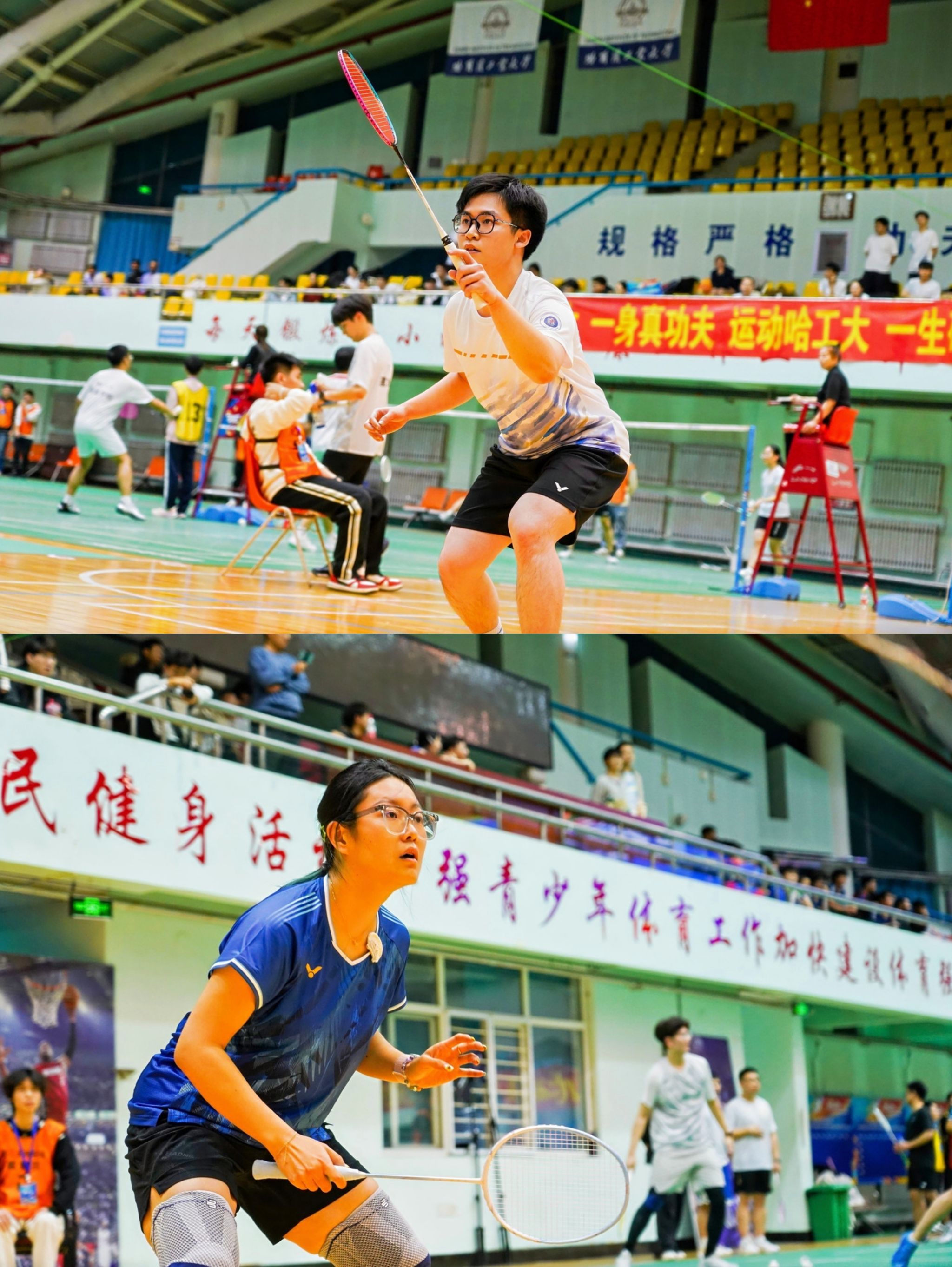 本届比赛采用男女混合团体赛制,设有男单、女单、男双、混双等项目,旨在深入实施健康中国战略和全民健身国家战略,深化羽毛球运动在哈工大青年中的推广普及与竞技交流,持续推动实现每天锻炼一小时、周周体验文化艺术、月月参加劳动服务的学生综合素质培养生态。赛场上,运动员们挥拍有力,步伐敏捷,高远球、扣杀、劈吊、网前小球等精彩瞬间层出不穷,全场热血沸腾,掌声欢呼声经久不息。裁判员严谨执裁,志愿者热情服务,共同保障了赛事的顺利运行。