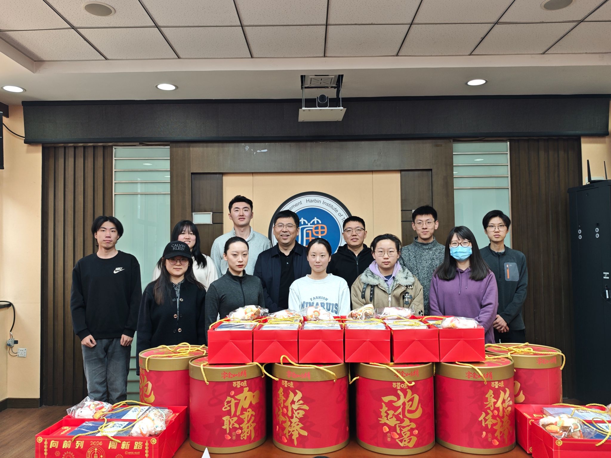 会后,学院领导向寒假留校学生发放了新春大礼包。